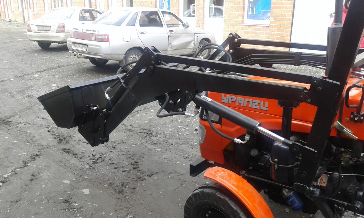 Фронтальный погрузчик или КУН (ковш универсальный навесной), предназначен для погрузки сыпучих и кусковых материалов, земляных работ с выгрузкой грунта в отвал или в транспортные средства, планировки площадок, перемещения щебня, гравия, песка и других материалов на небольшие расстояния, а также для строительно-дорожных, монтажных и такелажных работ. Агрегатируется с тракторами Уралец-180 и Уралец-220.