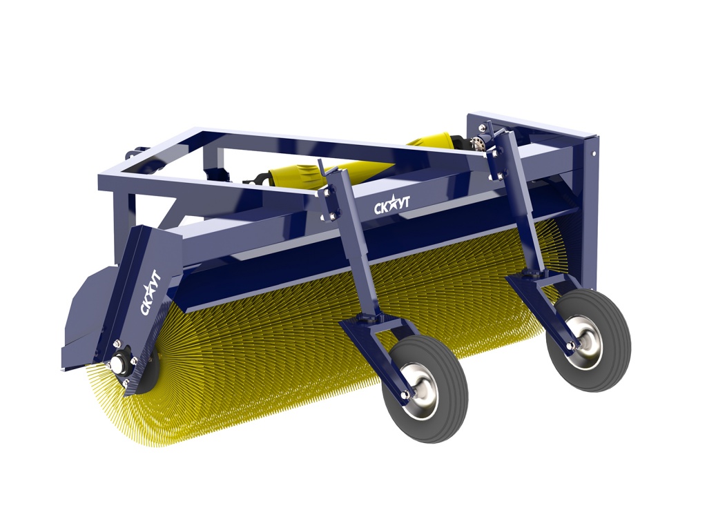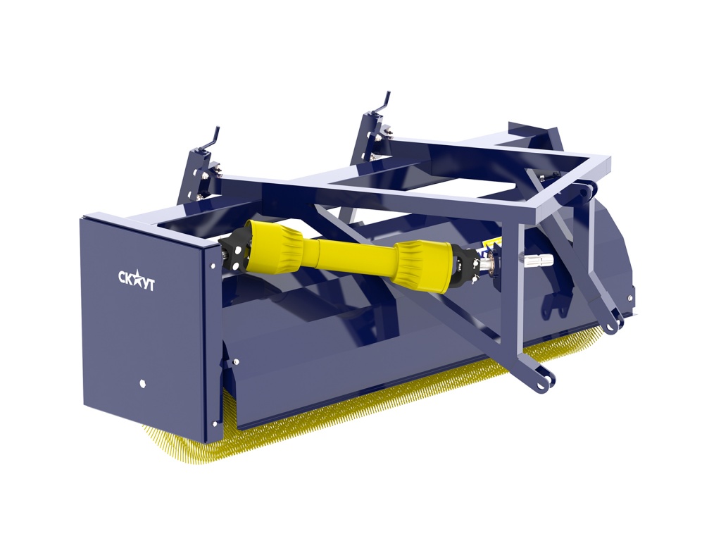 Подметальная коммунальная щетка предназначена для уборки грязи, листвы и снега с тротуаров и дорог. Щетка подключается на трехточечный прицепной узел и вал отбора мощности 540 об/мин. Для агрегатирования щетки необходим трактор от 20 л. с.