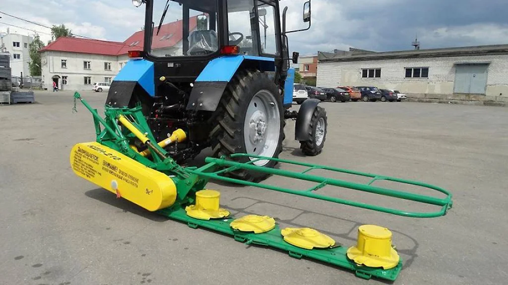 Косилка агрегатируется с тракторами класса 0,9 и 1,4 т.с., оборудованными трехточечной задней навесной системой, имеющими ВОМ с частотой вращения 540 об/мин. А также может работать с тракторами, имеющими ВОМ с частотой вращения 1000 об/мин.