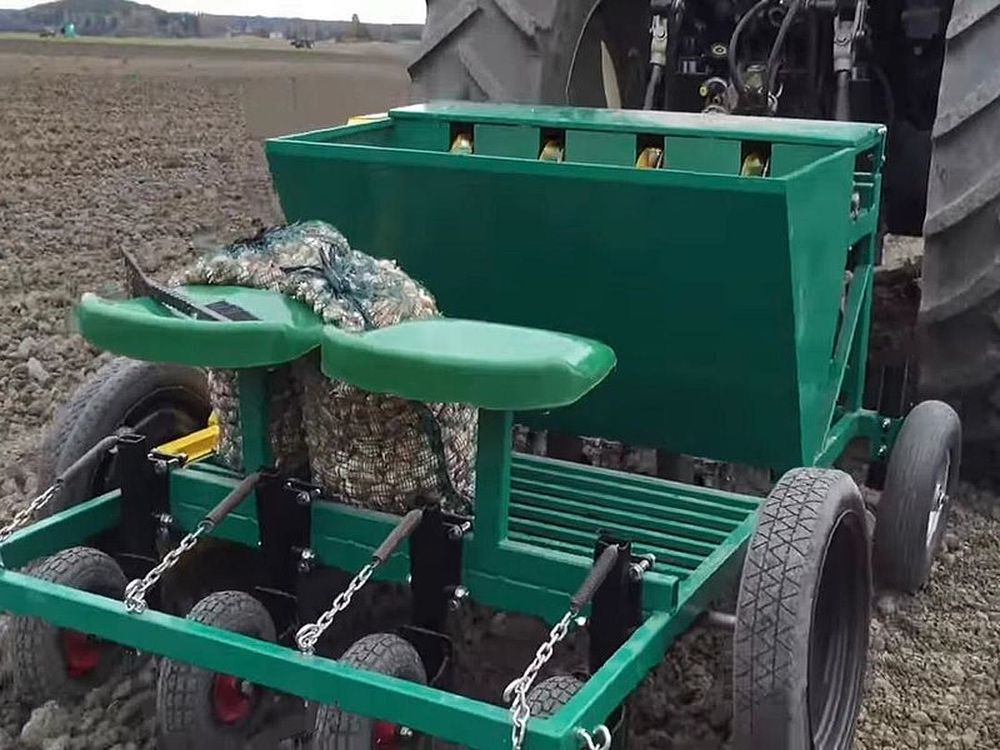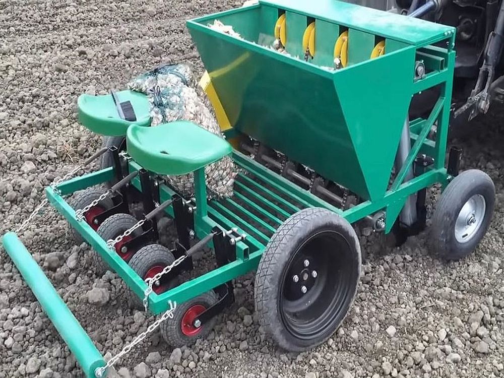 Сельскохозяйственное оборудование (орудие), прикрепленное к трактору и тянущееся за ним, используемое для посадки зубков чеснока или лука-севка. Вся работа выполняется автоматически (с минимальной помощью людей).
